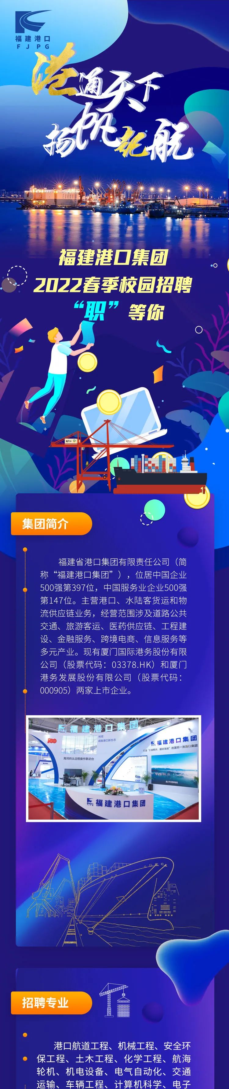 “港通天下 扬帆起航”福建港口集团2022春季校园招聘“职”等你