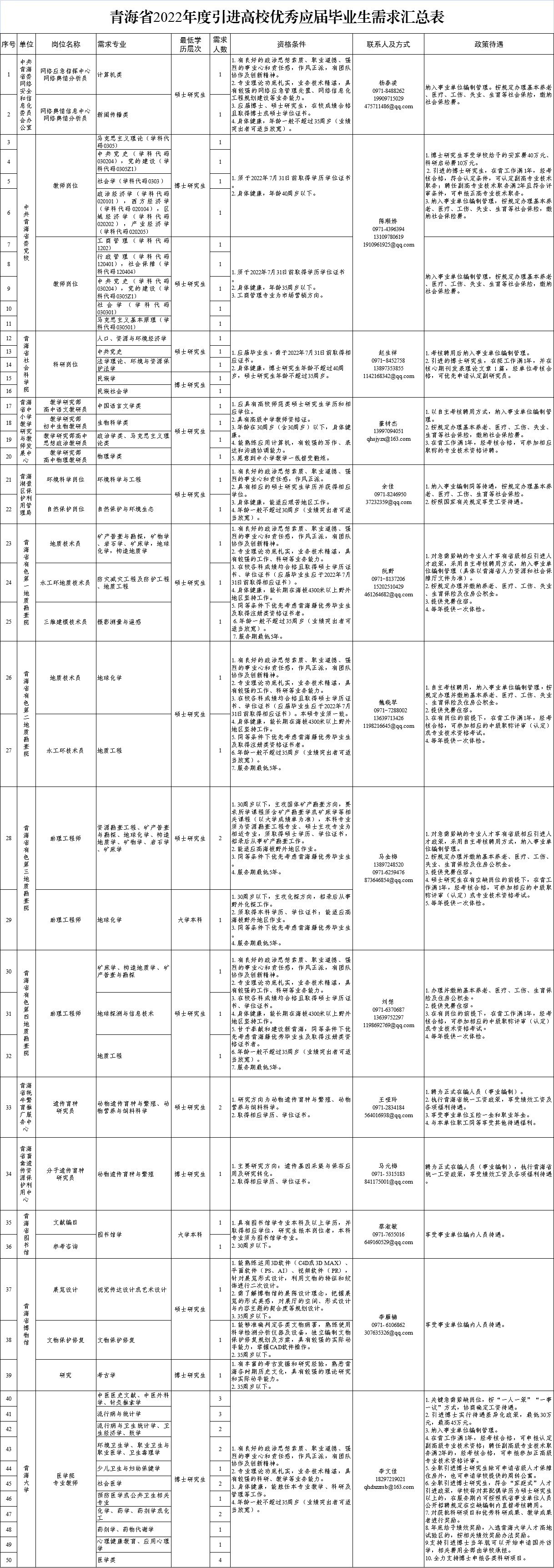 附件:青海省2022年度引进高校优秀应届毕业生需求汇总表