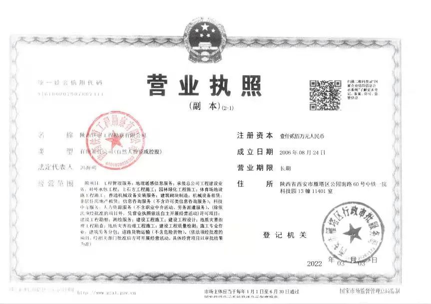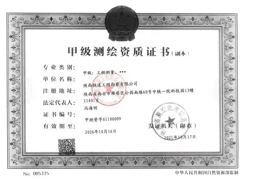 陕西铁道工程勘察有限公司,前身为“铁道第一勘察设计院西安分院”,是中铁第一勘察设计院集团有限公司的控股子公司。拥有工程勘察专业类工程测量甲级资质、劳务类工程钻探资质、地基与基础工程专业承包二级资质,是具有从事大型综合性工程勘察和岩土施工能力的专业化勘察企业。主营业务包括国内外工程勘察、工程测量、大地测量、摄影测量、工程咨询、工程总承包、岩土工程勘察、地基与基础工程、土石方工程的设计、施工、监测、检测与治理、监理、 咨询、机电设备安装以及上述业务相关的科技开发等业务。