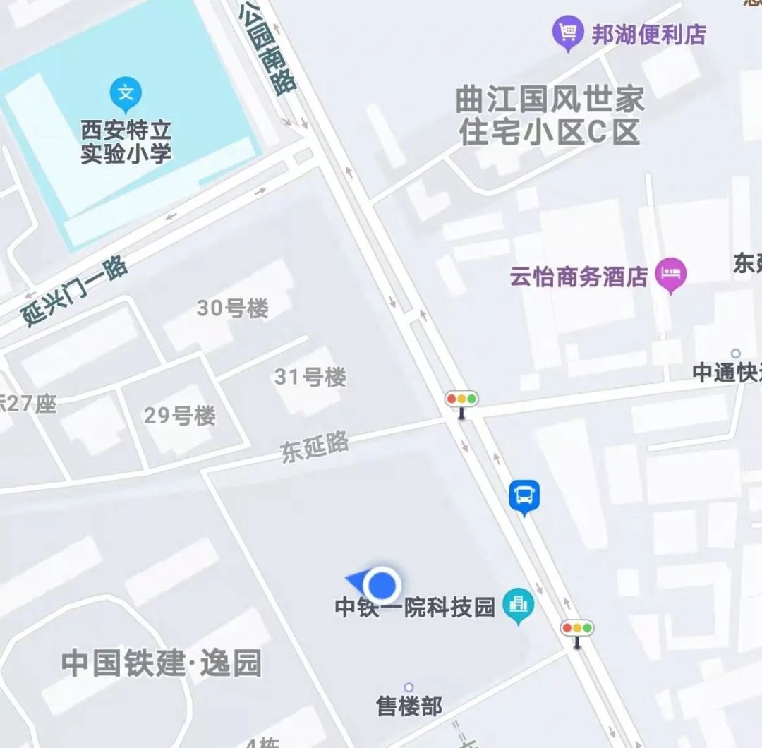 西安市雁塔区公园南路60号中国铁建逸园中铁一院科技园(西影路与公 园南路十字路口向南约700米,手机导航地图上搜索“中铁一院科技园”即可)。