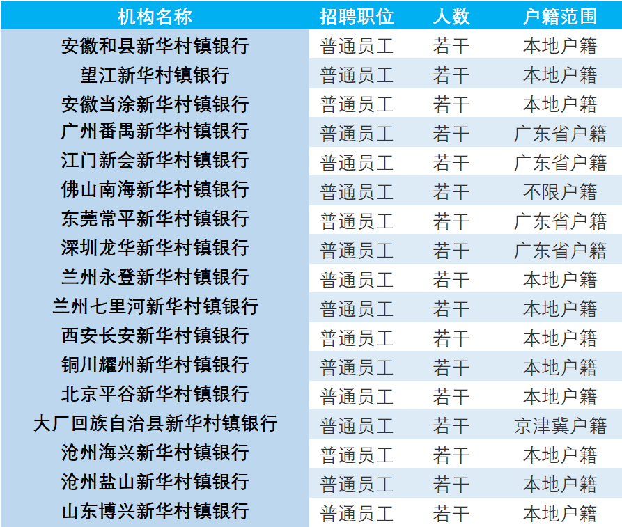1、符合以上条件有意应聘者请登陆新华村镇银行网站(http://www.xhbank.net/)下载“新华村镇银行求职登记表”和“应聘人员基本信息表”,将填好后的求职登记表(含近期免冠彩照)以附件形式连同身份证、户口本和毕业证书或毕业生推荐表扫描件发送至新华村镇银行报名邮箱。(报名资料文件夹命名为姓名+手机号+应聘何地何岗位,如:张三13912345678广州番禺普通员工.rar)