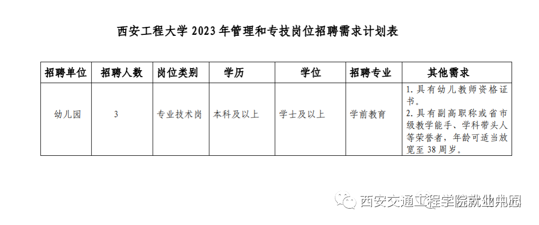 3. 具备招聘岗位所需的其他条件,以《西安工程大学2023年管理和专技岗位需求计划表》为准。