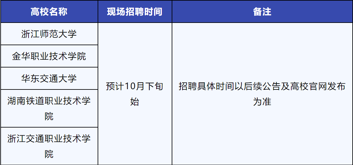 面试时间及地点:具体面试地点及时间以面试通知为准。现场招聘高校如下: