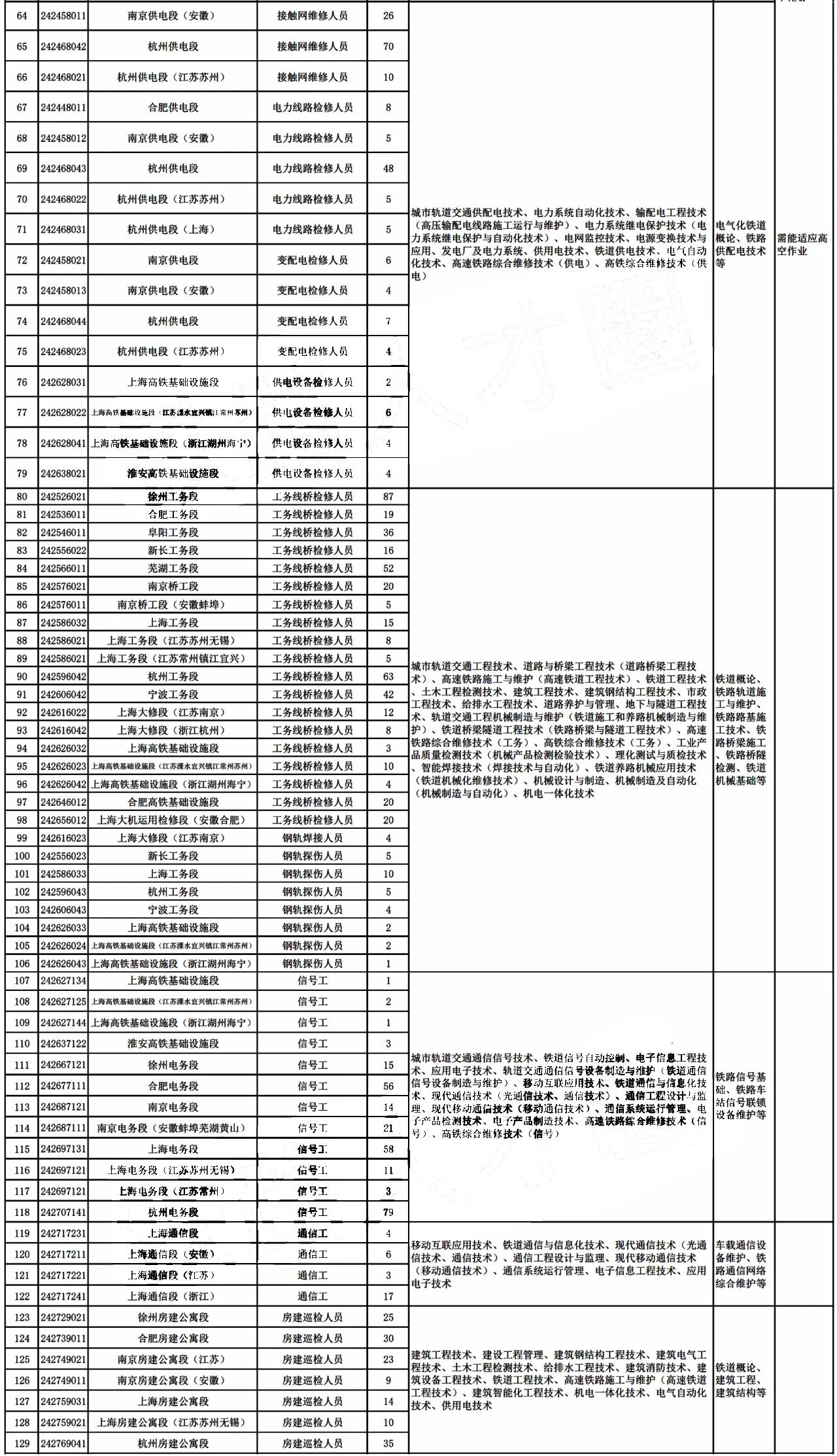 2.遵纪守法,品行端正,热爱铁路事业;素质能力适应招聘岗位工作要求,能够适应铁路沿线偏远地区、野外作业及长期夜班工作。