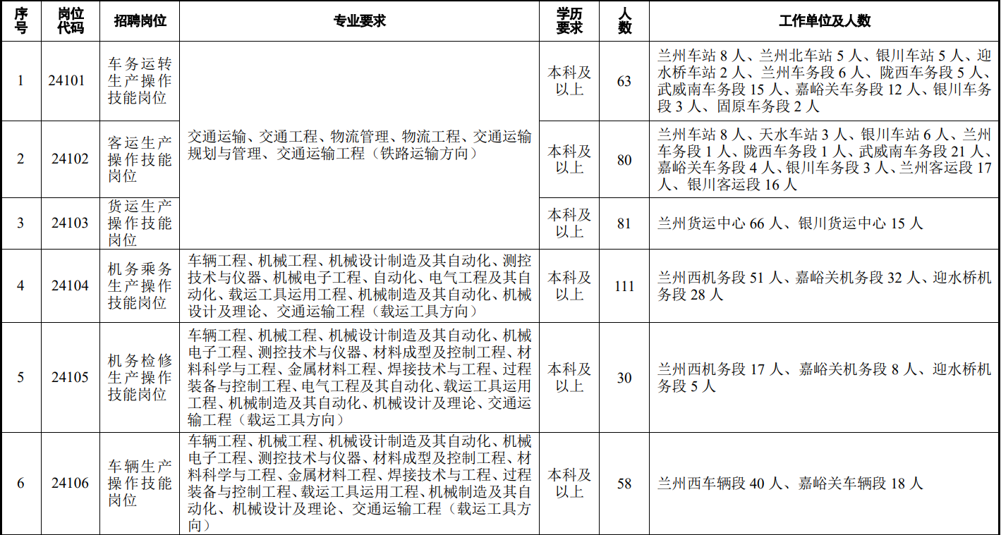 中国铁路兰州局集团有限公司因工作需要,招聘普通高等院校应届本科及以上学历毕业生,现将有关事项公告如下: