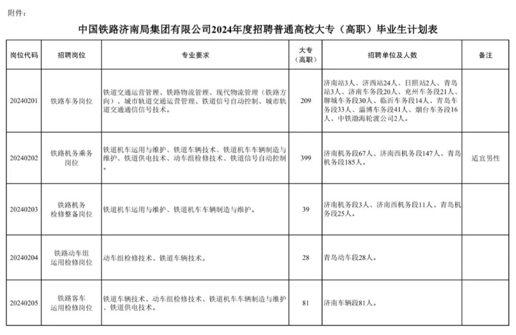 中国铁路济南局集团有限公司根据企业发展需要,拟招聘普通高等院校大专(高职)学历毕业生,现将有关事项公告如下: