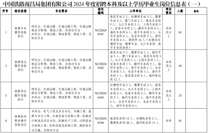 中国铁路南昌局集团有限公司根据企业发展需要,拟招聘普通高等院校本科及以上学历毕业生,现将有关事项公告如下:
