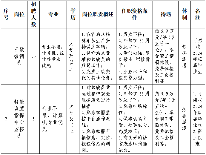 公司依托福州市人事人才公共服务中心网(福州人社求职招聘平台)、智联招聘官网、福州公交集团官网以及集团内部公告栏等载体发布招聘岗位及相关要求。