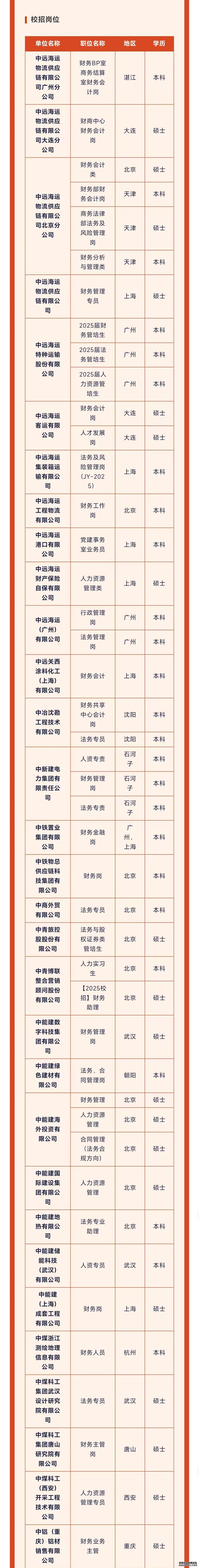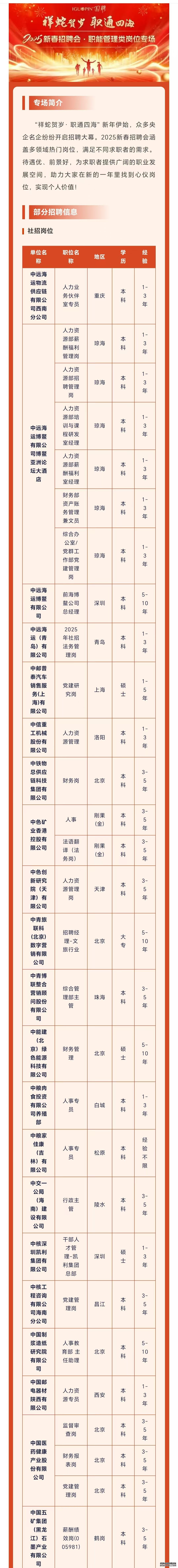 寒假暖心行动之就业资讯篇(十三)||2025新春招聘 | 央企名企职能管理类岗位专场
