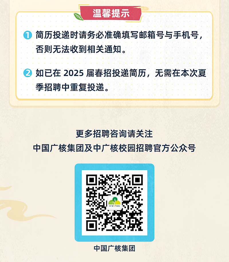 招聘信息|| 中广核2025届夏季校园招聘全面启动