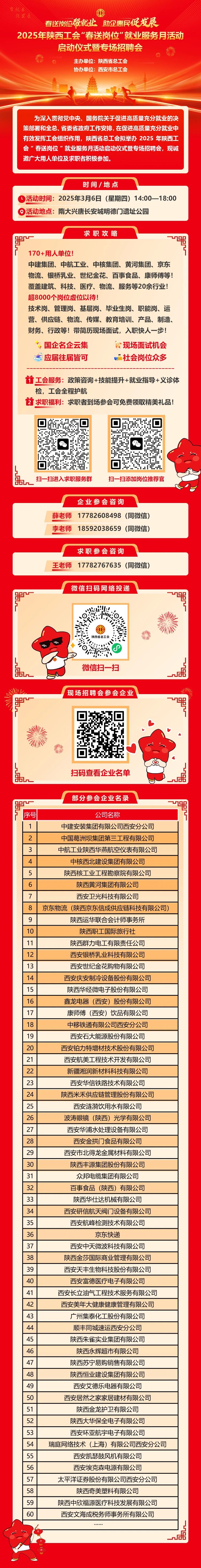 招聘信息||春招黄金机遇!2025年陕西工会“春送岗位”就业服务月活动启动仪式暨专场招聘会