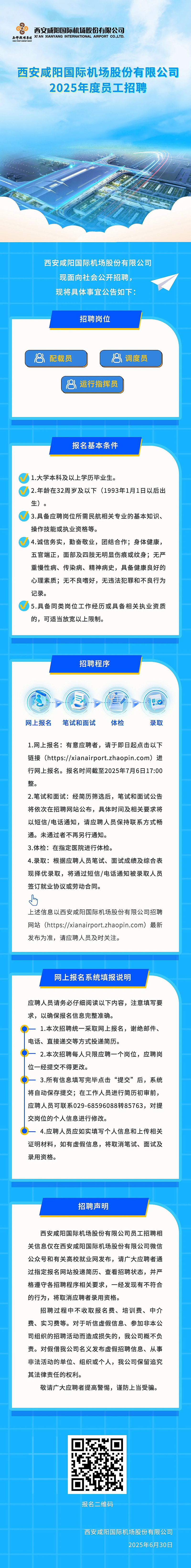 招聘信息||西安咸阳国际机场股份有限公司2025年度员工招聘